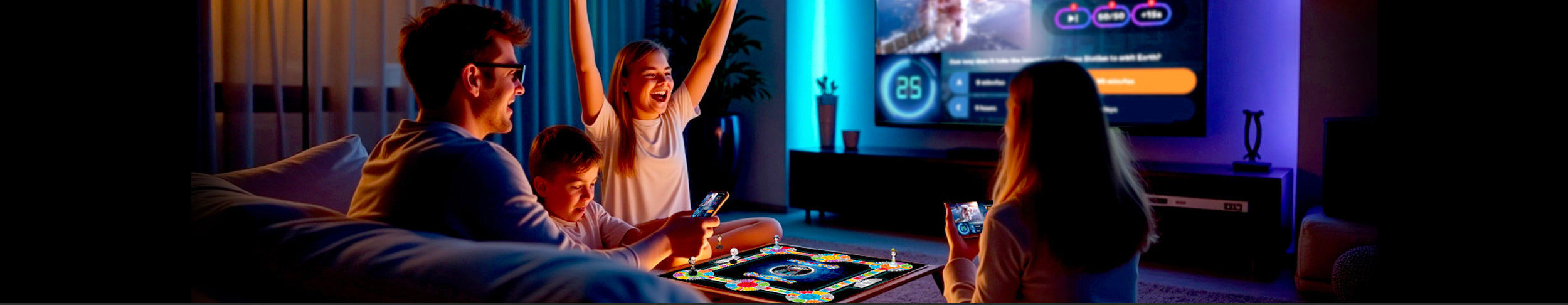Outsmarted's game AI adjusts question difficulty automatically to a player's age. Now ANYONE in the family can win!