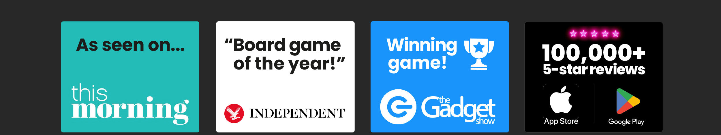 Outsmarted comes with 10,000+ questions brought to life with images, song clips and video. Divided into 10 core categories, they offer a perfectly balanced challenge for the whole family. The 10 core categories: Breaking News, Quick Thinking, Sound & Music, Pub Quiz, Back to School, TV, Film & Books, Sports & Leisure, Lifestyle & Culture, Science & Nature and History & Geography. In addition, there's always a selection of free bonus categories in the Outsmarted app.