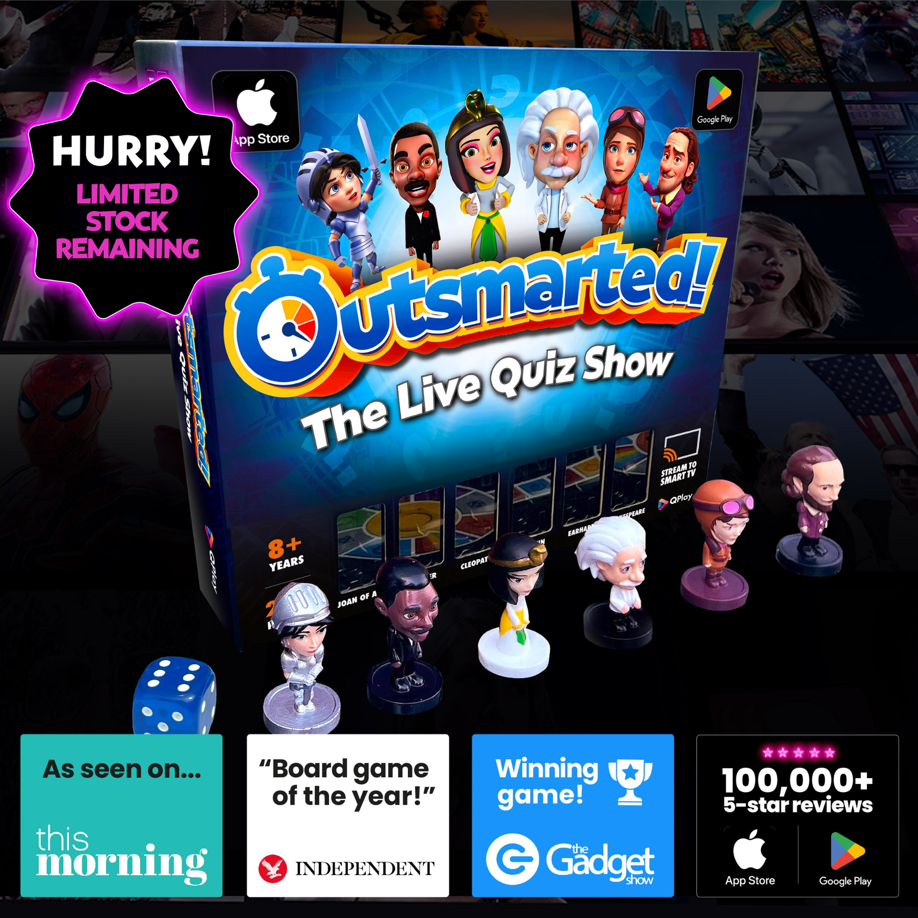 Outsmarted uses the power of technology to create the most exciting, immersive board game experience ever! Put your friends & family in the hot seat against the clock in your own ‘Live TV Quiz Show’.